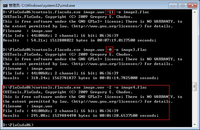 编码器的作者为用户设计好了一个bat文件,在Windows的命令窗口下执行这个BAT即可,BAT内默认FLAC的级别是5,也可以通过编辑BAT来改变这个级别。