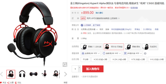 金士顿 HyperX Alpha 阿尔法 专业电竞耳机 京东售价899元>购买链接