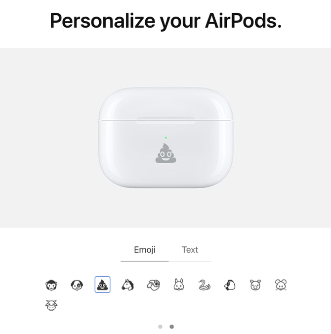 苹果公司在他们的官方网站中顾客购买或者访问AirPods的产品页面上着重突出了这一新的雕刻选项作为此次个性化服务模式的宣传,所有型号的AirPods订单都会提供定制雕刻的新项目。你喜欢此次苹果提供的表情符号定制吗?