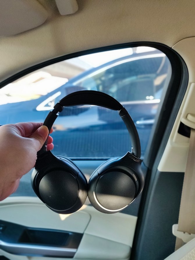 除此之外,如果我们抬起手掌遮挡整个右耳罩的话,将会进入 “透明模式”,这个模式下,音乐的音量将会自动降到20%,并且还会开启环境音增强模式,这样的话即是我们不摘掉耳机,也能和身边的人进行正常的交流。