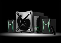 GT1000系HiVi惠威最新推出的游戏2.1音响,GT即为GameTheater的缩写,该产品作为系列首款产品,以现代现代感十足的设计结合绿色元素装饰条带来全新的视觉效果。GT1000为独立功放式设计,方便 桌面的摆放和声音的调节,全绿色指示灯和操作界面与游戏平台搭配相得益彰。目前售价780元。