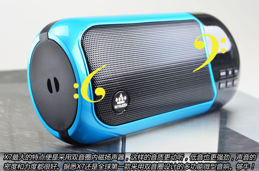 X7特别采用双音圈内磁扬声器,音质更动听,低音更强劲