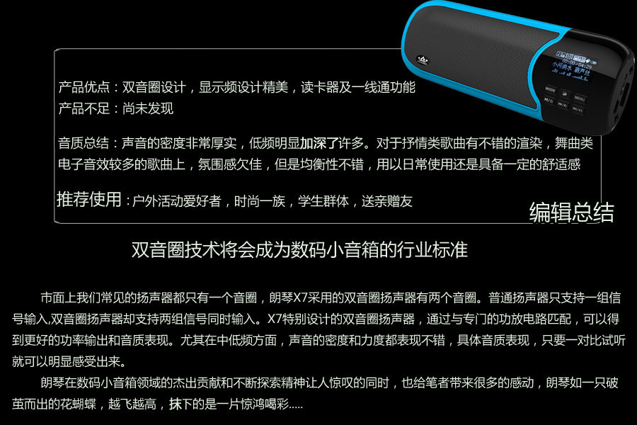 与市场上大多便携音箱相比,朗琴X7更加小巧玲珑,精致典雅