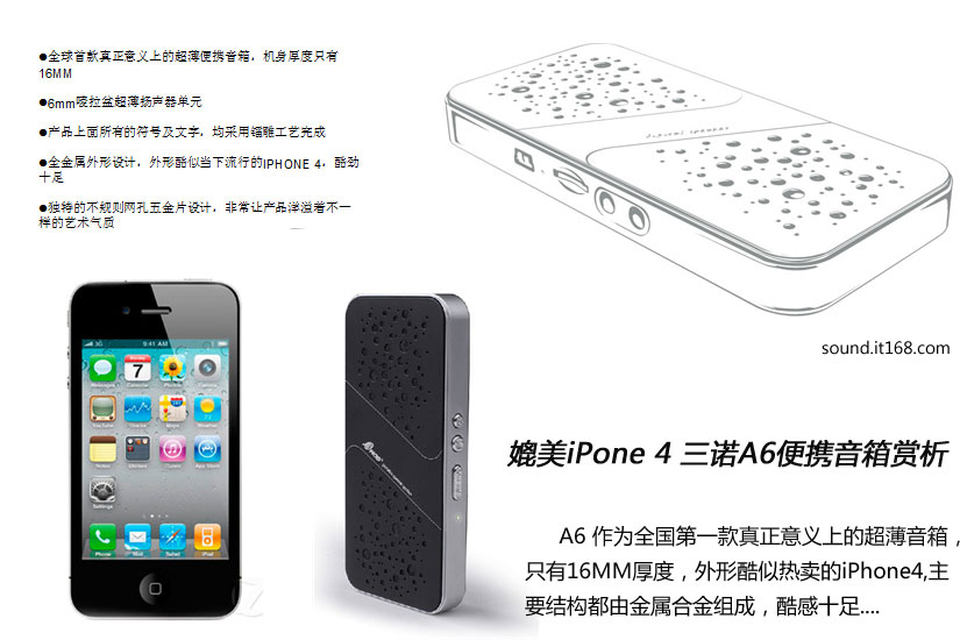 媲美iPhone4 三诺A6时尚超薄小音箱图赏